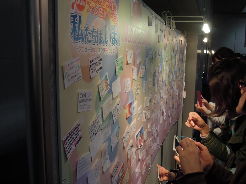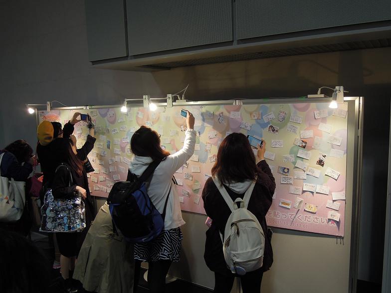 みやこめっせに設置された会場は、3Fの広大な第3展示場の東側をステージイベント会場、西側を展示会場、1F東側のエリアを物販会場に割り当てていました。展示会場では、実際に使用されたアニメーションの原画や生原稿を惜しげもなくパネルに貼付した原画展示ゾーン、キャラクター設定や美術設定の詳細を紹介したライブラリーゾーン、アニメーション制作のデスクをそのまま会場に持ち込んだ公開スタジオゾーン、更にはスタッフの私物の紹介コーナーやメッセージボードなどなど、2年前のイベント以上に盛りだくさんの充実した内容で、ゾーンによっては待機列ができるなど両日とも会場は詰め掛けた多くのファンの熱気で溢れていました。